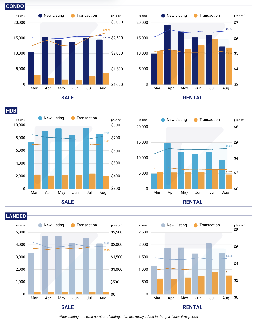 Residential Listings (Condo, HDB, Landed) March 2025 - August 2025