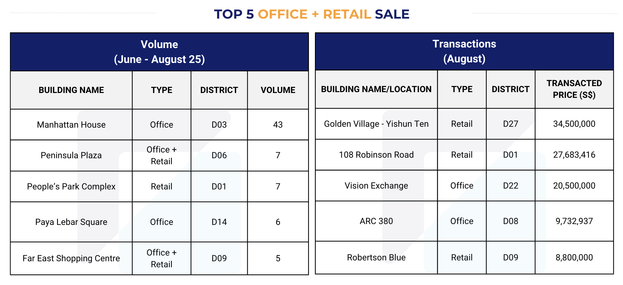 1. Top 5 Office and Retail Sale (by volume and transacted price) (June 2025 - August 2025)