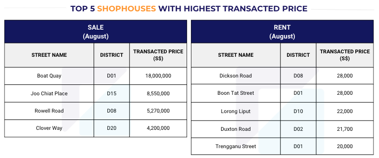 2. Top 5 Shophouses with Highest Transacted Price (Sale and Rent) in August 2025