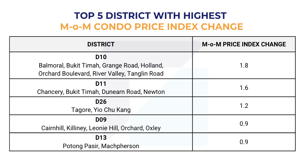 1. Top 5 Districts with highest Month on Month (M-o-M) Index Change