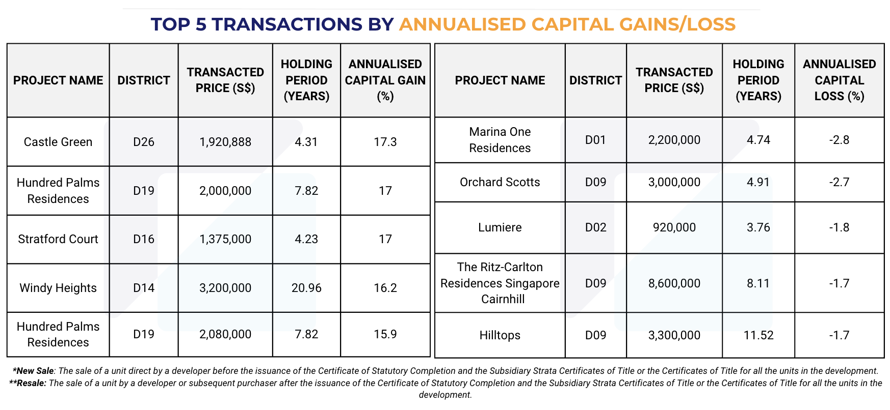 *Resale: The sale of a unit by a developer or subsequent purchaser after the issuance of the Certificate of Statutory Completion and the Subsidiary Strata Certificates of Title or the Certificates of Title for all the units in the development.