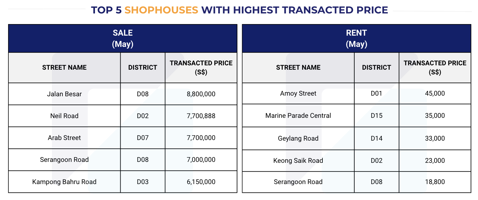 2. Top 5 Shophouses with Highest Transacted Price (Sale and Rent) in May 2025