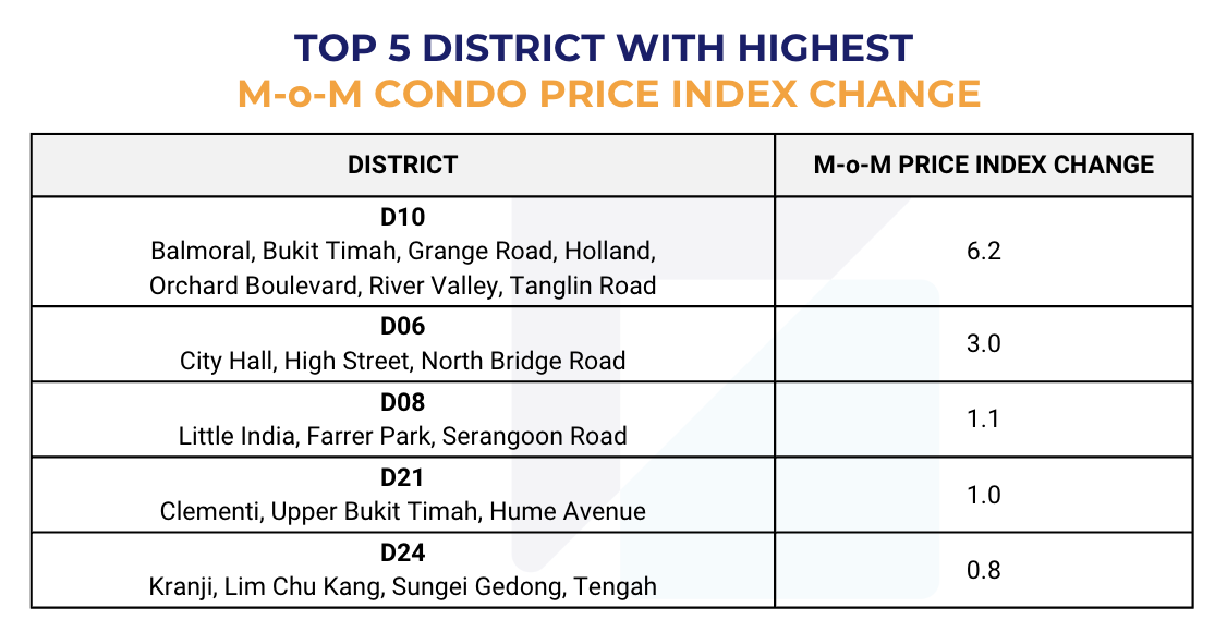 1. Top 5 Districts with Highest Month on Month (M-o-M) Index Change