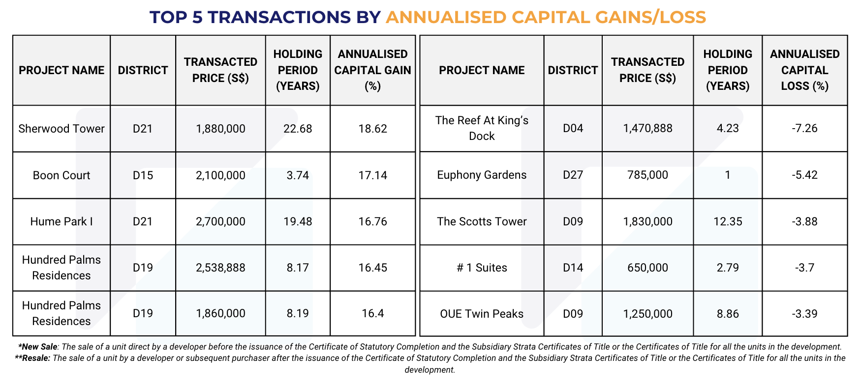 The highest annual loss percentage of the month was seen in a unit at The Reef At King's Dock in D04 after a holding period of 4.23 years, which recorded an annual loss of 7.26%.