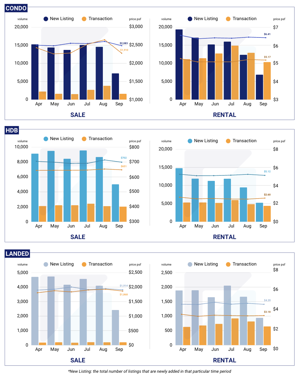Residential Listings (Condo, HDB, Landed) April 2025 - September 2025