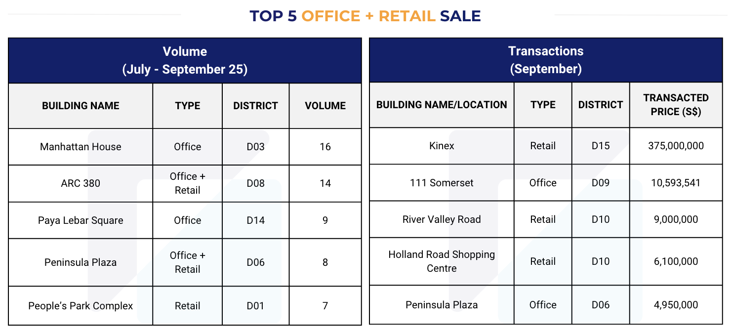 1. Top 5 Office and Retail Sale (by volume and transacted price) (July 2025 - September 2025)