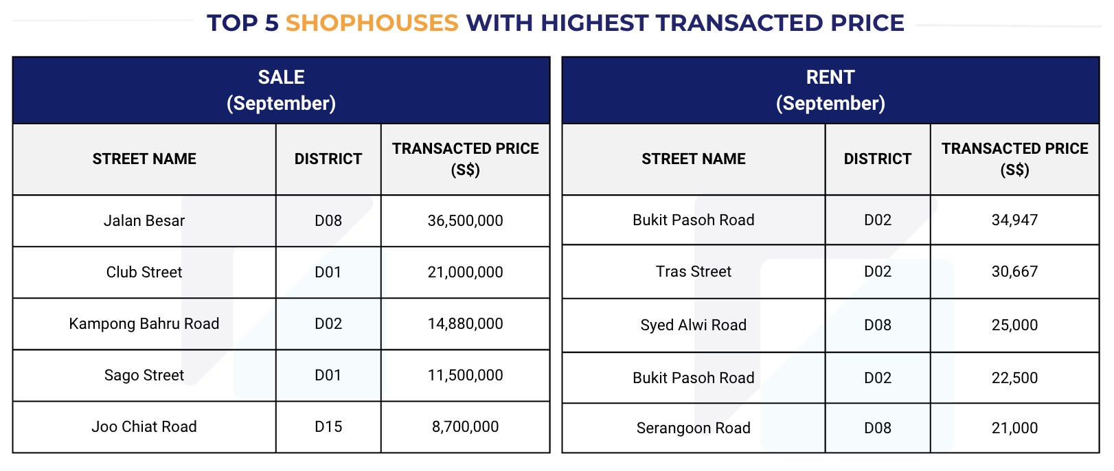 2. Top 5 Shophouses with Highest Transacted Price (Sale and Rent) in September 2025